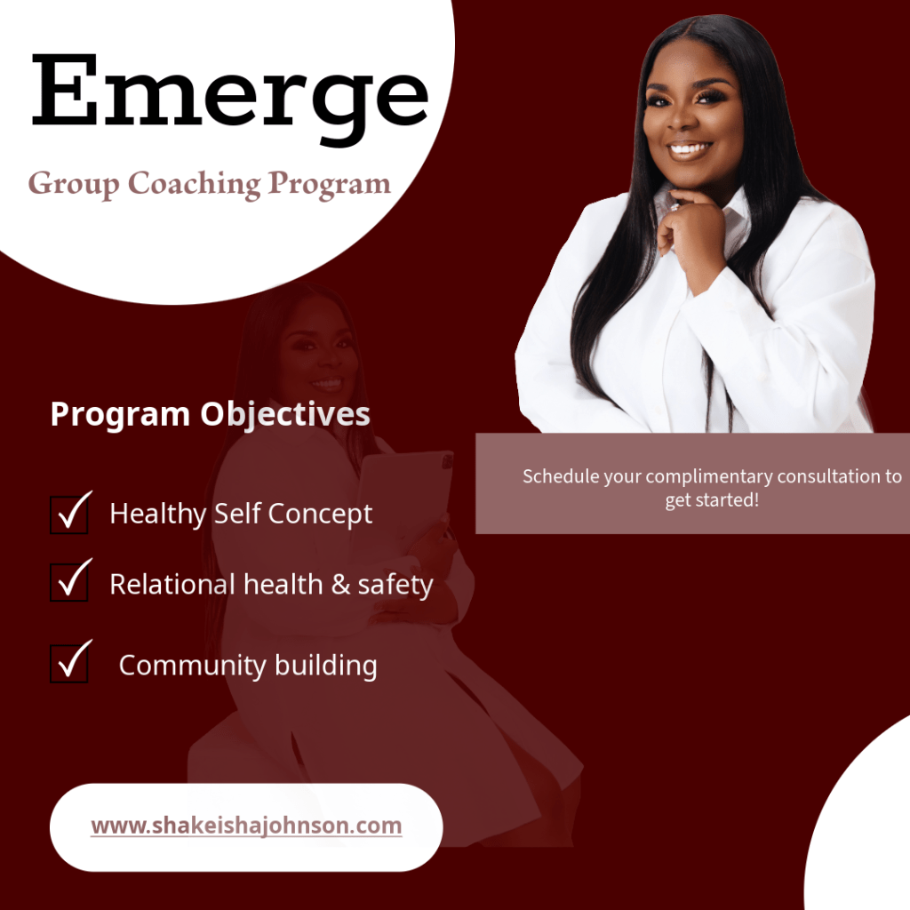 EMERGE is designed to educate and empower your most authentic self in the most powerful ways. By establishing a clear understanding of your identity, setting clear expectations in relationships and learning to build – you’ll walk away equipped to be everything you were born to be and open to everything that’s waiting behind the fear and silence you’ve worn as a shield for so long. It’s time to EMERGE unapologetically and start taking up space to become the main character in your story. Start today!